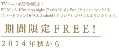 まだ詳細は分かりませんが、とりあえずセイバールートが無料で配信されることは確定のようです。