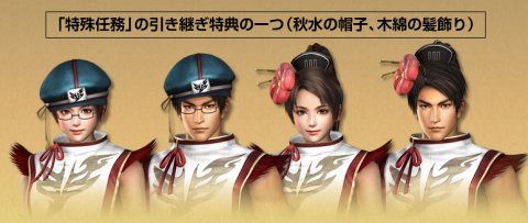 また、引き継ぎ特典として「秋水の帽子」、「木綿の髪飾り」などがゲットできます。