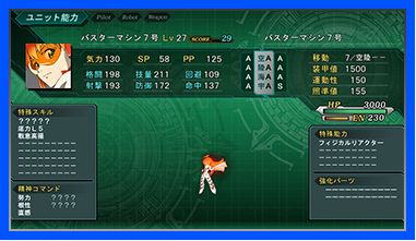 ▲「バスターマシン7号」のユニット能力画面です。