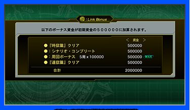 いわゆる前作のクリア特典。「時獄編」のクリア回数&シナリオチャートコンプリート可否に応じてボーナスが貰えるとのこと。
