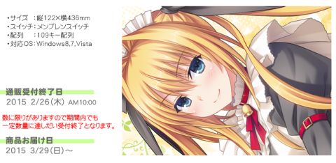 戯画(TGL)の公式通販「萌プラス」にて、「パルフェ」の花鳥玲愛キーボードが発売決定! (⇒公式サイト)