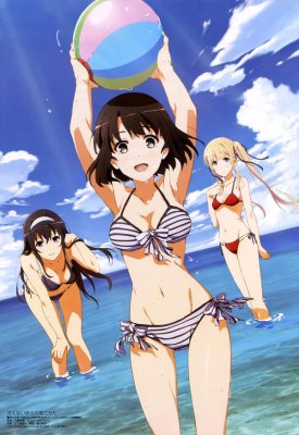 英梨々が赤ビキニ、加藤が縞々ビキニ、詩羽先輩が紐ビキニってのは公式の版権絵と同じですね。