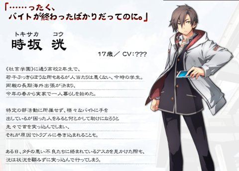 2015年発売。PS Vita「東亰ザナドゥ」の「時坂 洸」と「柊 明日香」のプロフィールが公開されました。(⇒公式サイト)
