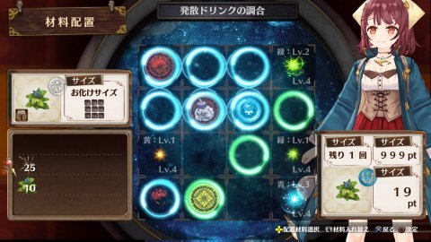 発想したレシピをもとに調合を行い、生み出したアイテムでバトルに挑み、さらなる錬金術の根幹へと迫っていきます。
