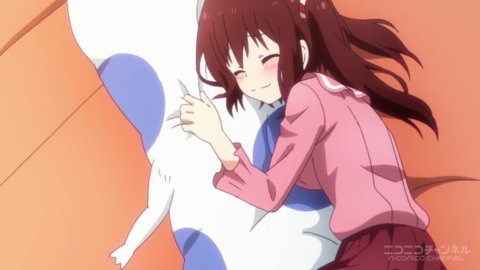 今週の第2話より、抱き枕にグリグリして幸せそうな海老名ちゃん。グリグリ〜。