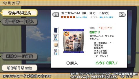 貯めたポイントはショップで「雀士せんべい」を買うのに使います。