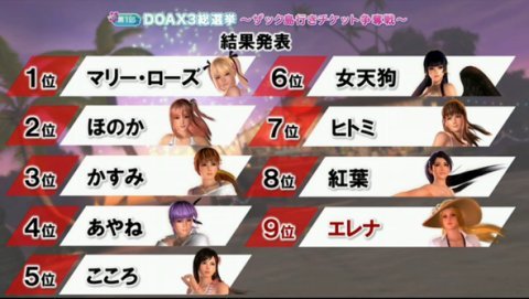 あと「DOAX3」の人気投票結果発表も衝撃でした。