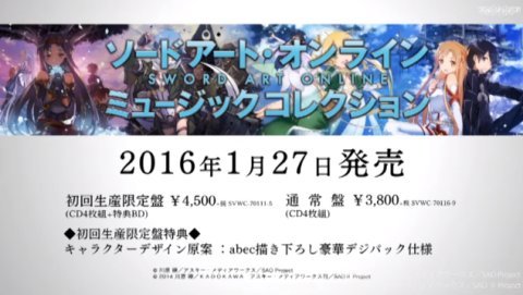1月27日発売。「ソードアート・オンライン ミュージックコレクション」の紹介PVが公開されました。(⇒公式サイト)