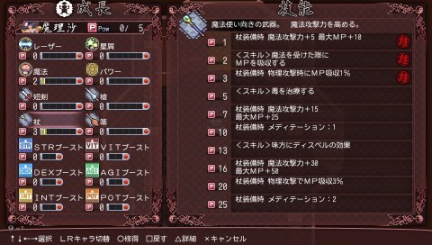 マイトスタッフ・妖精の服・大地の指輪などを拾ったので、とりあえず全部魔理沙に装備させてみたw