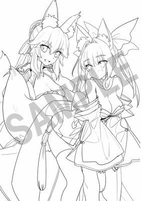 線画ではありますが、赤セイバー・キャス狐・アルテラ・ジャンヌ・エリちゃんとバラエティに富んだ美女ラインナップとなってますね。