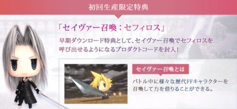 初回特典はセイヴァー召喚「セフィロス」のDLコード。