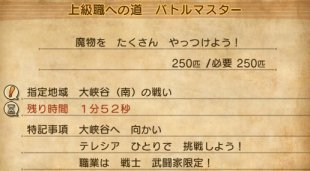 どうやら「戦士」と「武闘家」のレベルを20まで上げると、バトルマスターに挑戦する権利が貰えるみたいです。