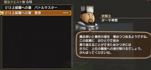 僧侶のレベルがちょうど「20」になってて、今度は「賢者」に挑戦する依頼が来てしまいました。