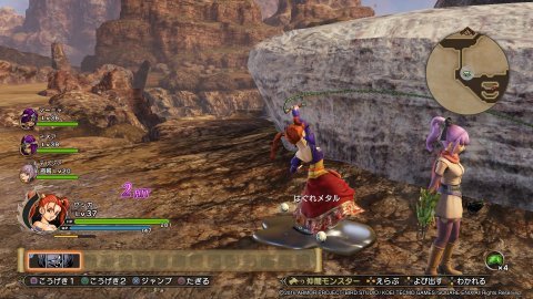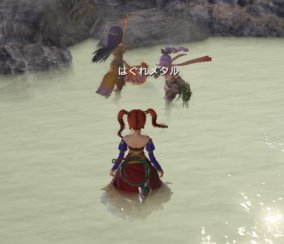 温泉にのんびりと浸かっている「はぐれメタル」を発見し、有無をいわさずフルボッコする女性陣(笑