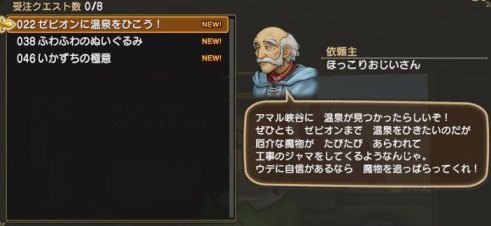 依頼の報酬は「ゼビオンに温泉ができました」じゃないの?
