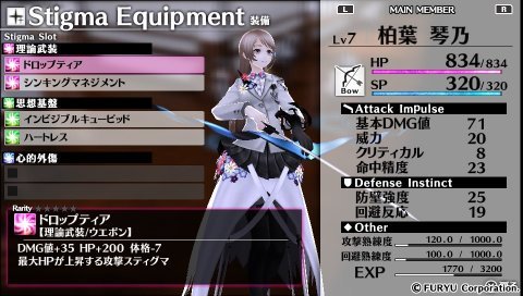 琴乃さんはHPが低いので、即死しない程度にスティグマで上げておくと良いでしょう。