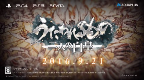 【最新作】『うたわれるもの 二人の白皇(ハクオロ)』発表!発売日は「16年9月21日」って早すぎ嬉しいいいいい!