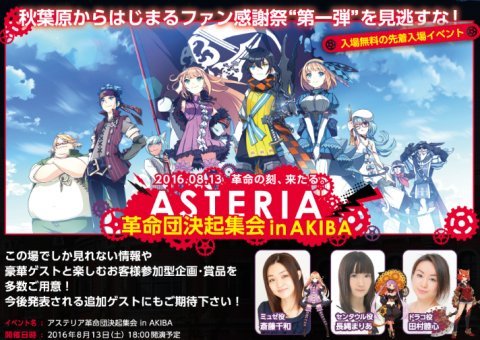 最後に、ファン感謝イベント「アステリア革命団決起集会inAKIBA」が8/13に開催されることも告知されています。