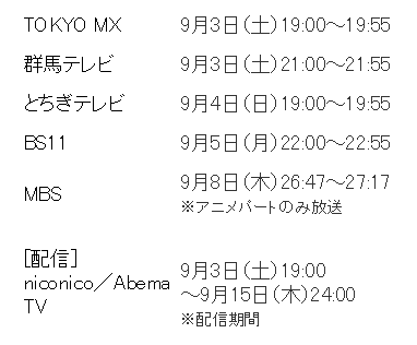 MX&群馬テレビでは昨日放映が終了していますが、その他の3局では今夜以降に放送です。