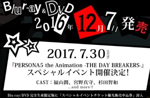 来年7/30にP5のイベントが開催されるそうで、そのイベチケ応募券がBD/DVD特典となるようですね。