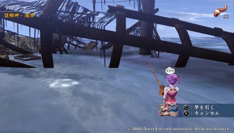 船の残骸の下だから、釣り針を投げ込むのが難しいぞい…。