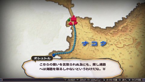 船を降り、陸路でナコクの「隠し砦」に向かうオシュトルたち。