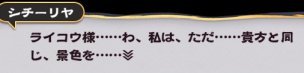 ライコウは途中までは単なる敵としてしか見られなかったけど、最後で内面を吐露して一気に株が上がりましたよねぇ。後、ライコウ戦は、シチーリヤ倒さずライコウだけ倒すと、ライコウパワーアップなし&追加で戦利品を貰えますよ。