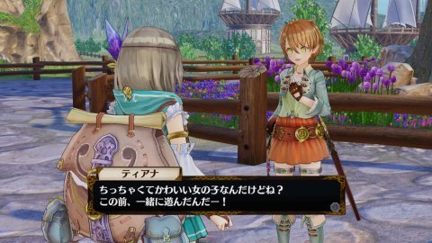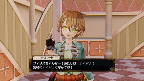 | ■ティアナ・パッシェン 年齢:16/職業:旅人 CV:戸田めぐみ イラスト:NOCO 元気いっぱいの若き旅人 ふらりと家を出て,ノリで冒険者になってしまった,明るく素直な少女。テンションがとても高く,とにかく元気。落ち着きがなく,ひとところに留まるのが苦手。各地を旅しており,手に入れたものを「ティアナセレクション」と称してフィリスに販売する。 |