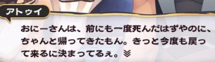 しかも名乗りを上げてる最中に4人ともやられるとかアトゥイも鬼すぎるだろ…。