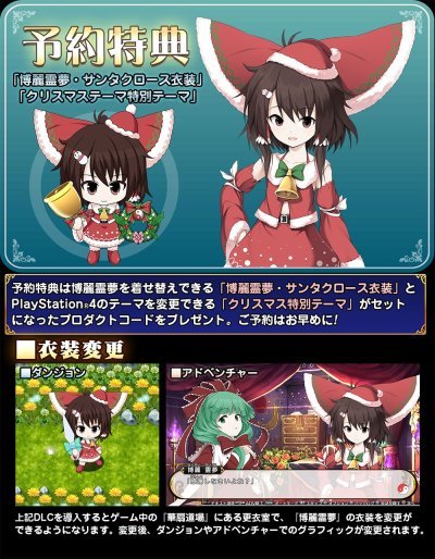 また、予約特典の博麗霊夢、サンタクロース衣装DLCの紹介PVも公開されています。