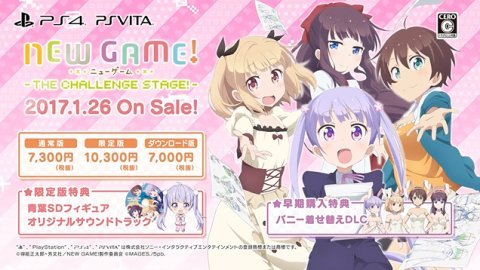(Vita)NEW GAME! -THE CHALLENGE STAGE!- 限定版 【限定版特典】SDフィギュア、サントラCD同梱 & 【早期購入特典】バニー着せ替えコスチュームDLCコード 同梱 5pb. 2017-01-26 ■Vita通常版 ■PS4通常版 ■PS4限定版 |