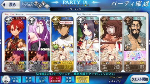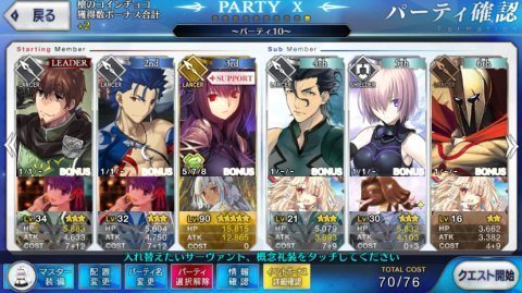 この時点でマスターのレベルは55。サーヴァントの主力は大体レベル30前後となっています。
