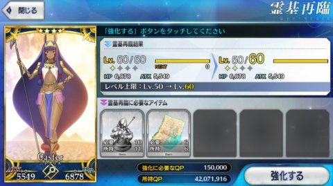 ただし!スキラゲは再臨より多くの素材とQPを要求します。星4なら貢だけでも2、30。QPなら5000万以上は要求してきます。まずは手持ちの星2、3をバランスよく育てることをお勧めします。