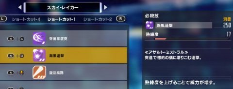 レイカー師匠は最初の技が3つしかないんですけど、この「アサルトミストラル」が使いやすくていいですね。