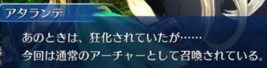 すぐに消えてしまったからあまり記憶に残ってないんですけど、アタランテ自身も覚えている様子。