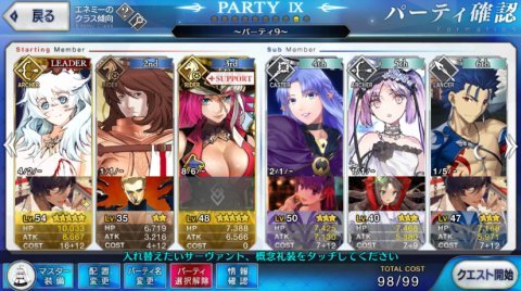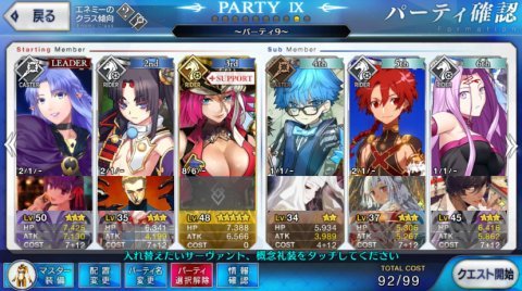 メディアと牛若丸の単体宝具コンビを前線に上げたので、NPを貯めて宝具連発すれば何とかなるでしょ!