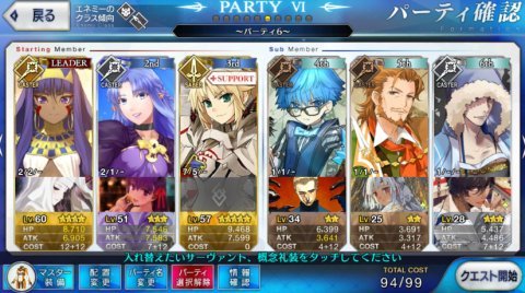 演出的には使うべきなんでしょうが、戦力的に厳しかったんじゃ無いですかねぇ。まぁ6章の中でこの戦闘だけサポートベディヴィエールはレベル・スキルレベル・宝具レベルのすべてがマックスという、素晴らしい演出だったので、使って驚いて欲しかった感はありますが。