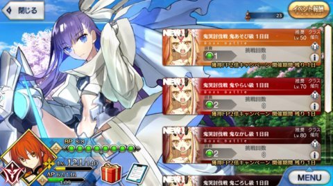 イベントのほうは報酬の礼装さえ集めれば編成と戦略次第で高ランクのほうも行けると思いますが、無理そうなら鬼やらいや鬼泣かせ周回でもポイントは最後まで行けたはずなので、鬼殺しは試しに行ってみるくらいでも良いかもしれません。