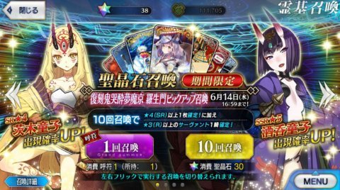 まず「羅生門ピックアップ召喚」に挑戦だー!