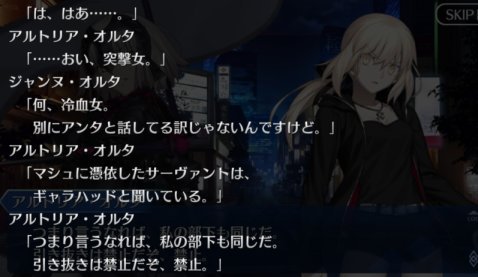 アルトリアオルタとは序章(冬木)で一度会っていますが、どうやら向こうは覚えていない様子。