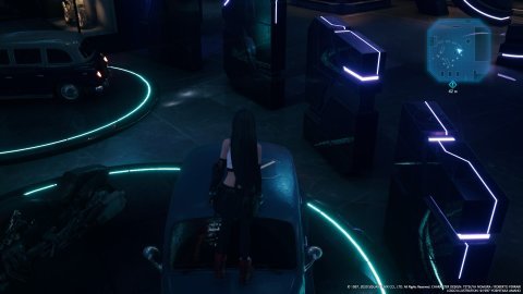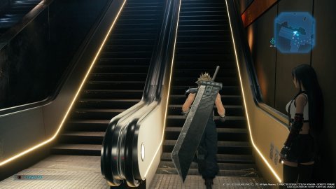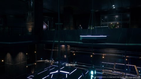 エレベーターで上の階に向かおうとするも、カードキーがなくて使用できないティファたち。
