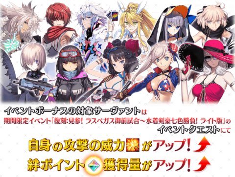 【予告】2020年6月8日(月)18:00より期間限定イベント「復刻:見参! ラスベガス御前試合〜水着剣豪七色勝負! ライト版」開催予定!お知らせ内にイベントの詳細を公開しておりますので、ぜひご覧ください!詳しくは→https://t.co/Et4jKkKzyF #FGO pic.twitter.com/i0JwYxNoCb