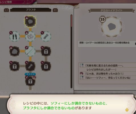 というわけで、ここで「プラフタ調合」が解禁になりました。