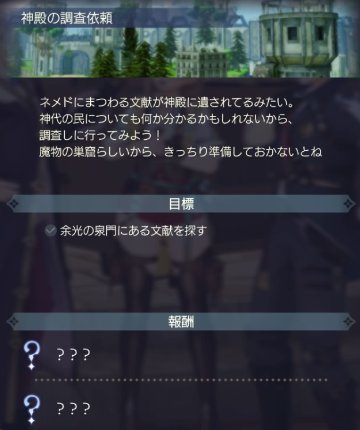 前回のラストで書きましたが、ノーマルクエスト「神殿の調査依頼」をやりたいのですよね。