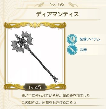 「ディアマンティス」の方は予想通り「ディアン」の武器でした。