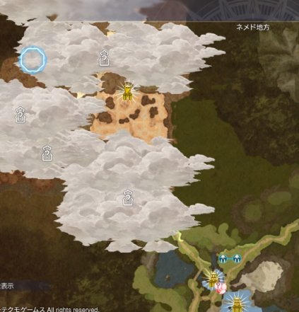 しかも「ネメド地方の西」は一切手を付けてなかったので、全域に渡って雲モクモク状態。