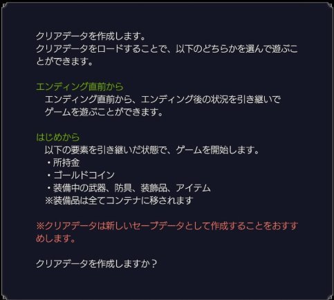 そのままゲームを続けることも、強くてニューゲームも可!