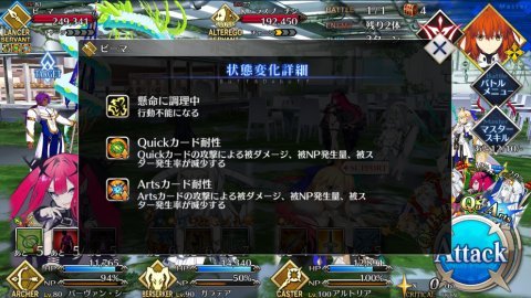 (コメより)神父、ギミック判ってるならそれぞれの対応する弱点クラスとカード色を併せた単体宝具三連で終わるけど完全に初見殺しですよねw毎度毎度、高火力の暴力で押し切らせないという意思を感じる