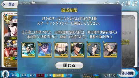 ん?新選組のサーヴァントは8人。戦闘のメンバー枠は6個…。