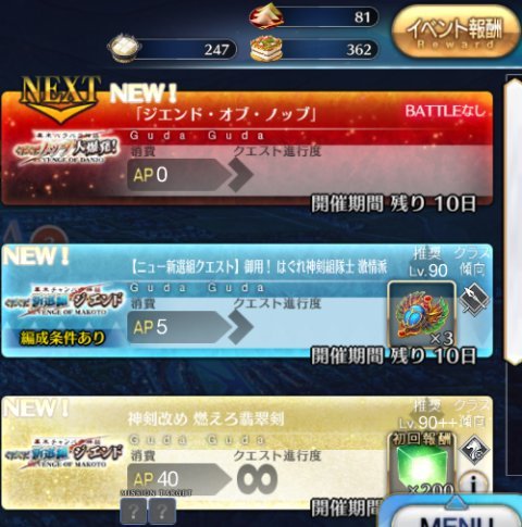 90++で素材交換して10/15からのアサシン冠位戦に備えたかったのに